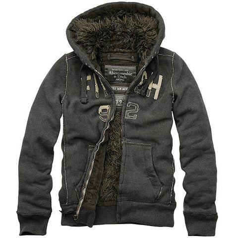 85% soft sueded cotton/15% polyester, Supersoft, lined with soft faux fur, rugged distressed applique, sturdy metal zipper, ribbed trims, Vintage Abercrombie Wash, Classic Fit, Imported